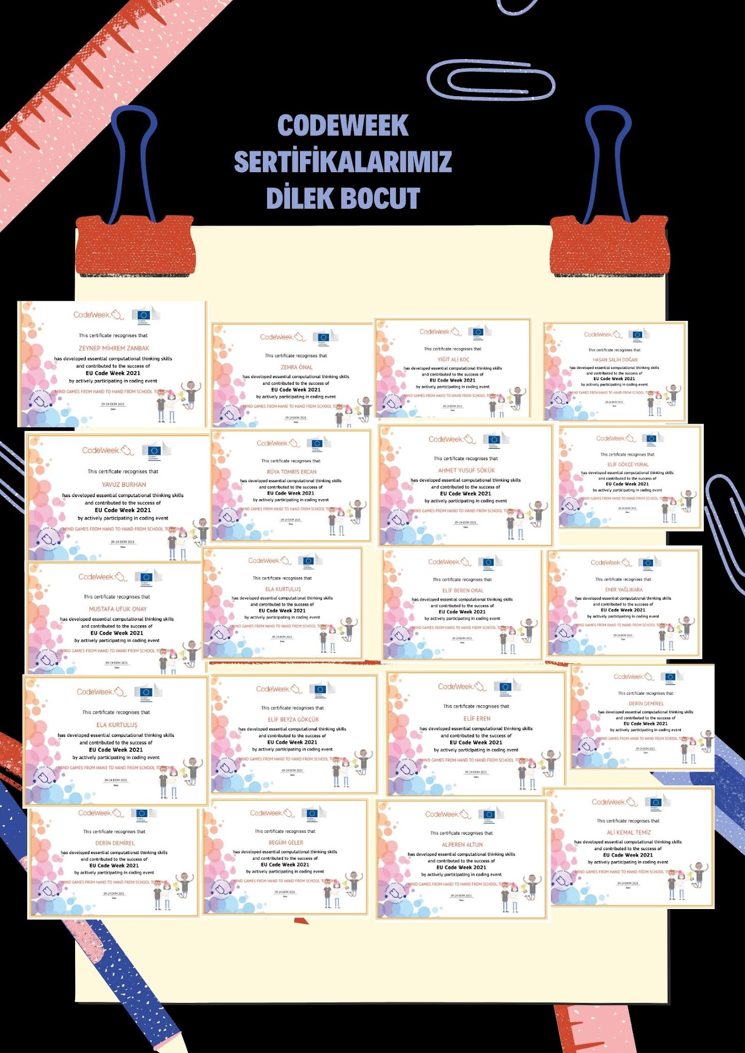 CodeWeek Haftası Ortak Ürün etkinliği öğrenci katılım sertifikaları Bağlantıyı al Facebook X Pinterest E-posta Diğer Uygulamalar Ekim 21, 2021 CodeWeek Haftası Ortak Ürün etkinliği öğrenci katılım sertifikalarımız Bağlantıyı al Facebook X Pinterest E-posta Diğer Uygulamalar Yorumlar